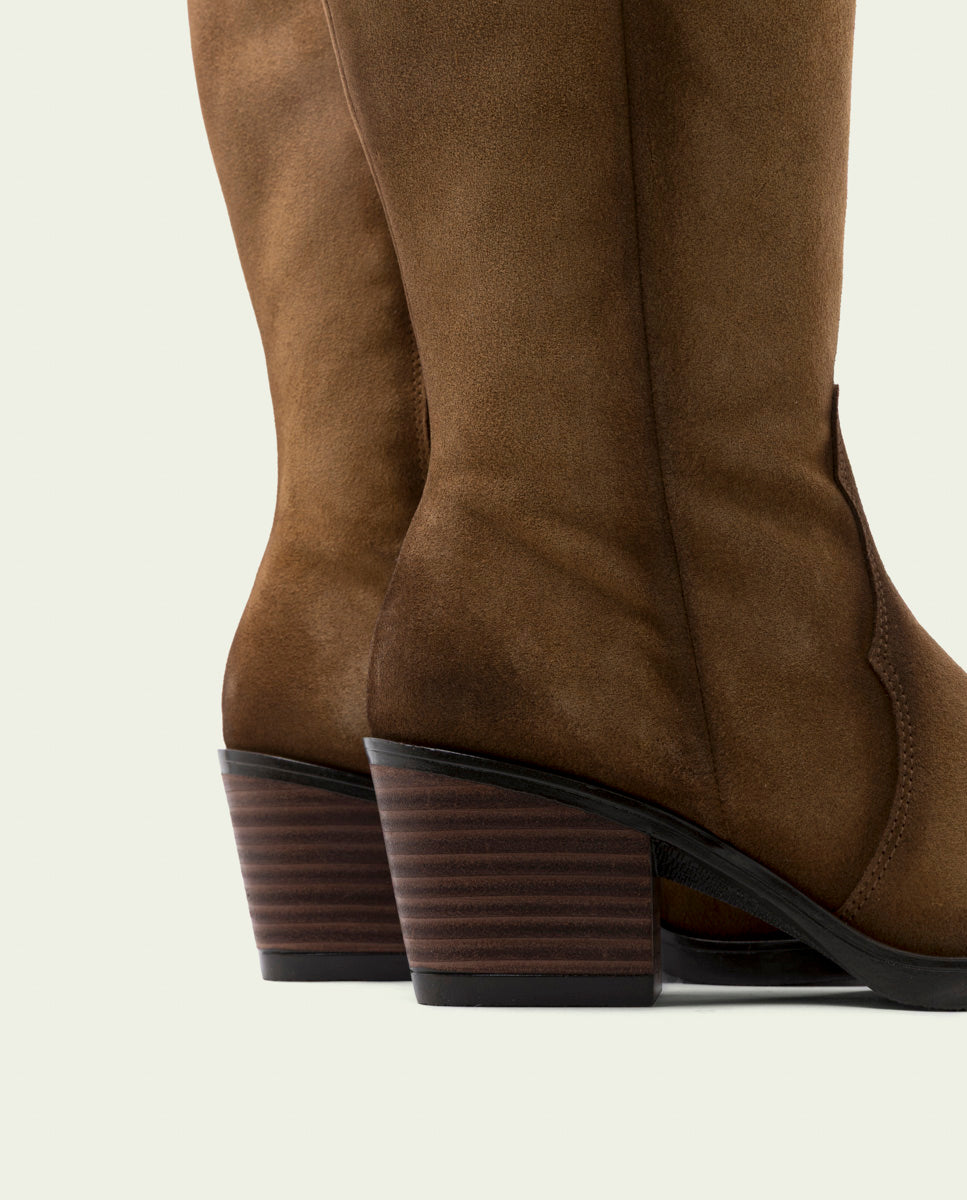 BOTAS COWBOY DE PIEL TAUPE CON CREMALLERA HELGA