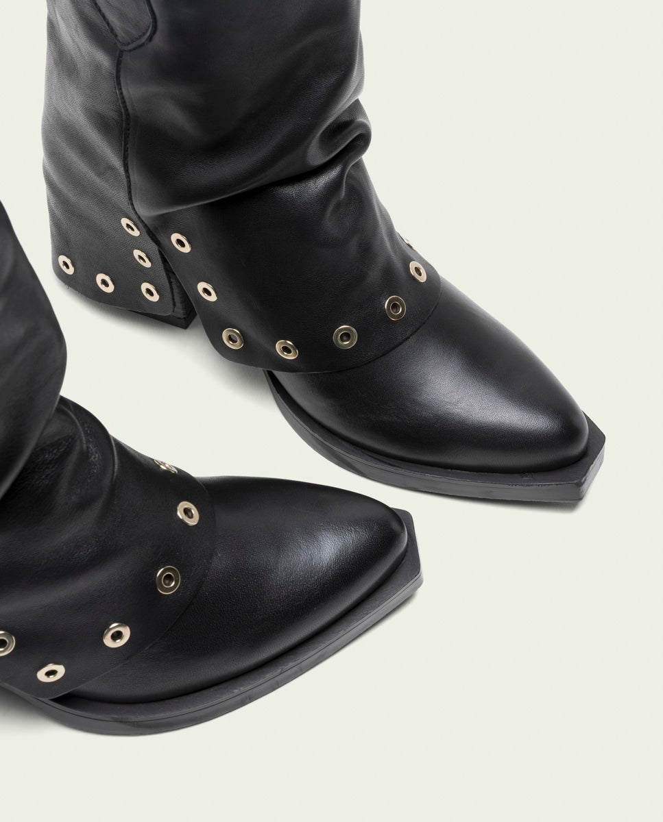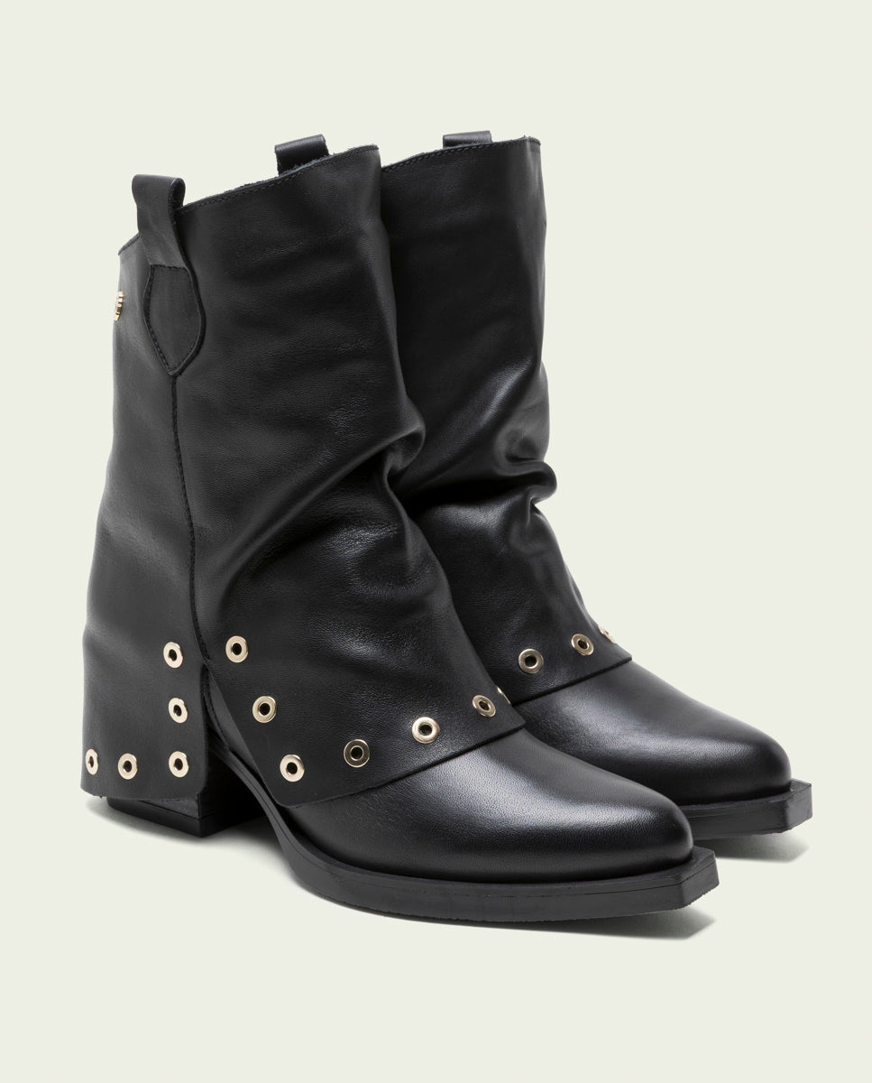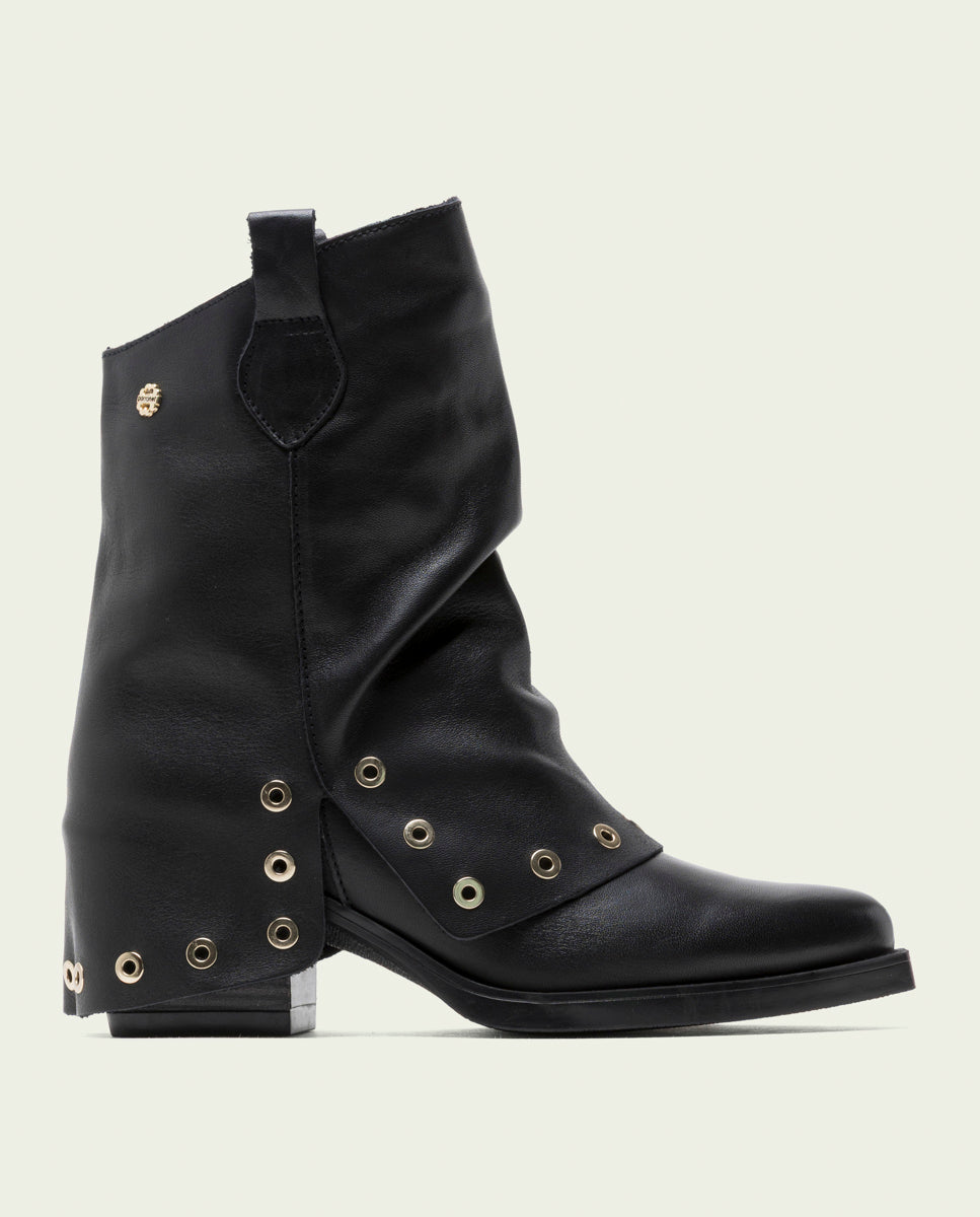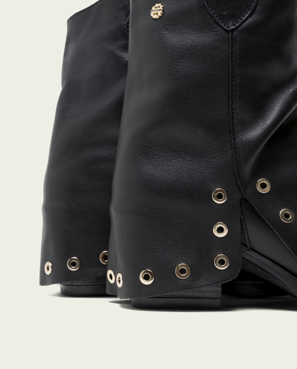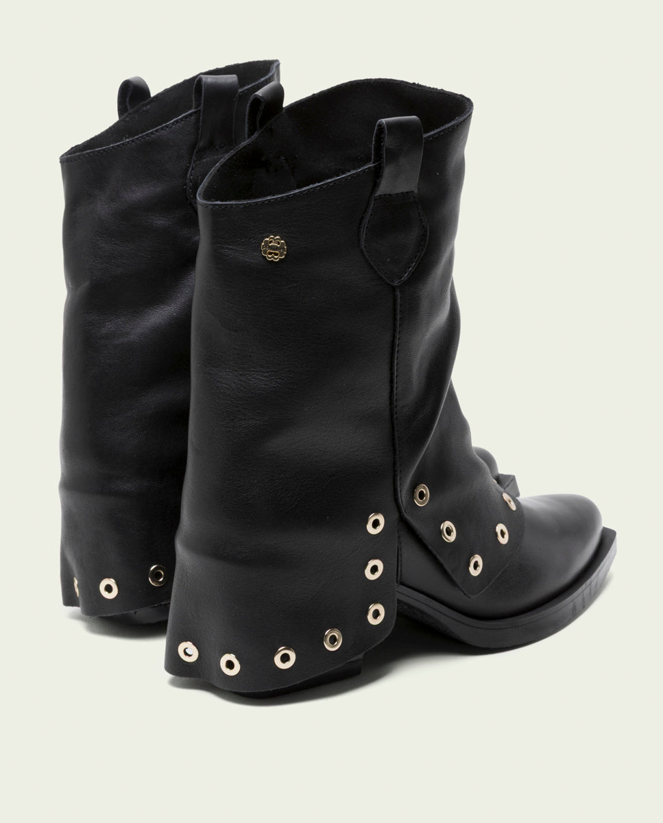 BOTAS DOBLE FAZ DE PIEL NEGRO CON TACHUELAS FLAVIA