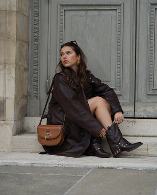 BOTAS COWBOY DE PIEL MOKA CON CREMALLERA FLORA