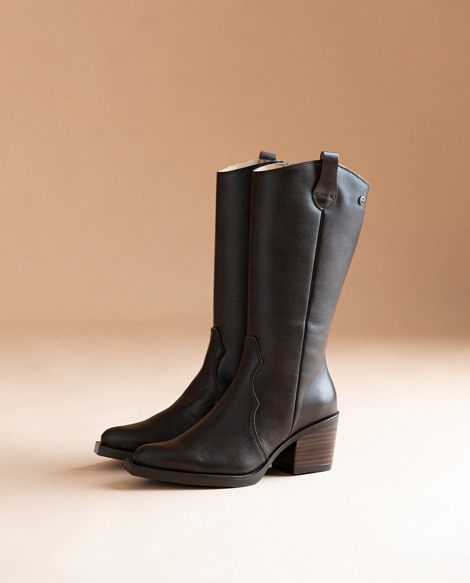 BOTAS COWBOY DE PIEL MOKA CON CREMALLERA FLORA
