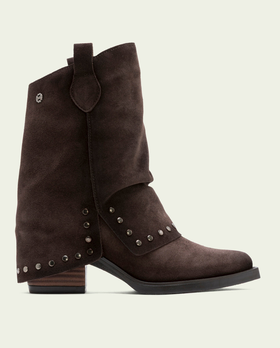 BOTAS COWBOY DE SERRAJE DOBLE FAZ CON CREMALLERA MOKA HEIDI