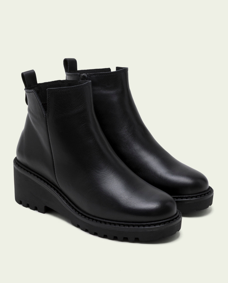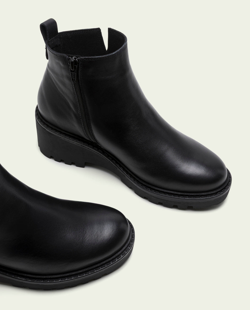 BOTINES DE PIEL CON CUÑA Y CREMALLERA NEGRA ELENA