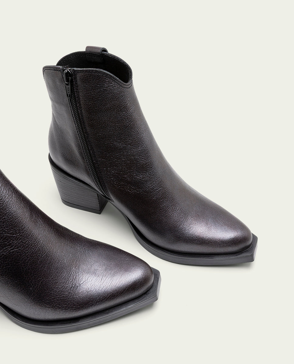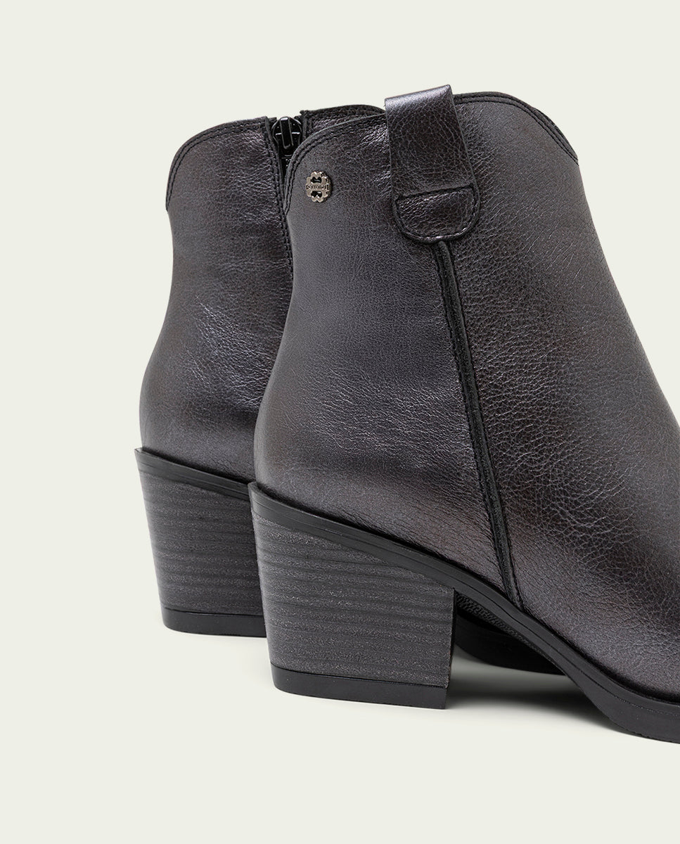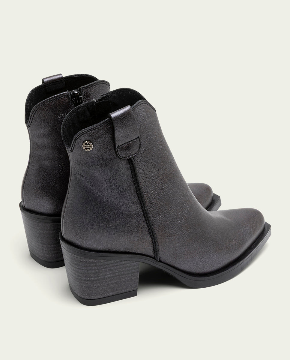 BOTINES COWBOY DE PIEL METALIZADA MOKA CON CREMALLERA FÁTIMA