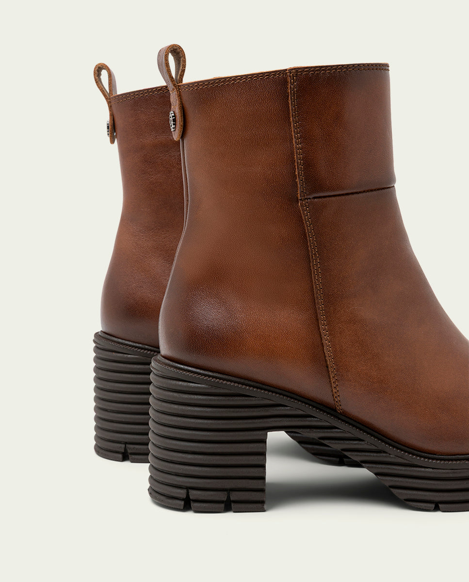 BOTINES DE PIEL CON CREMALLERA CUERO MARTA