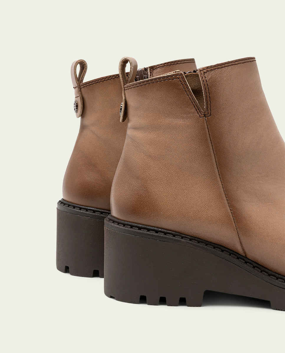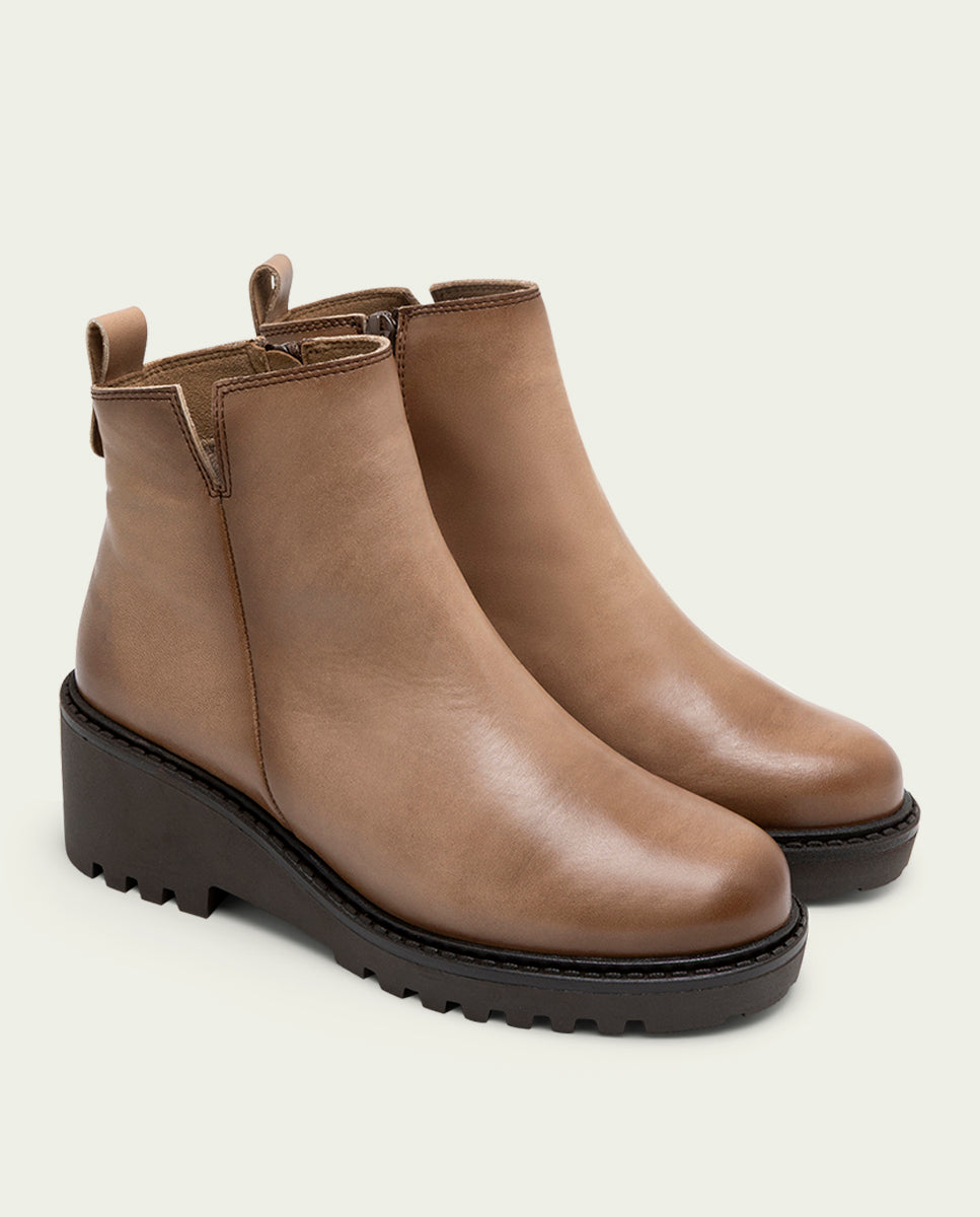 BOTINES DE PIEL CON CUÑA Y CREMALLERA TAUPE ELENA