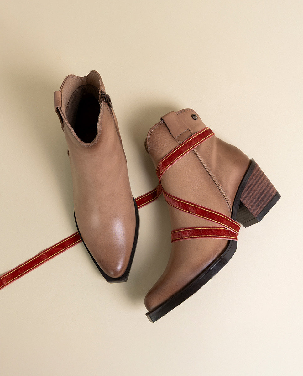 BOTINES COWBOY DE PIEL TAUPE CON CREMALLERA FRIDA
