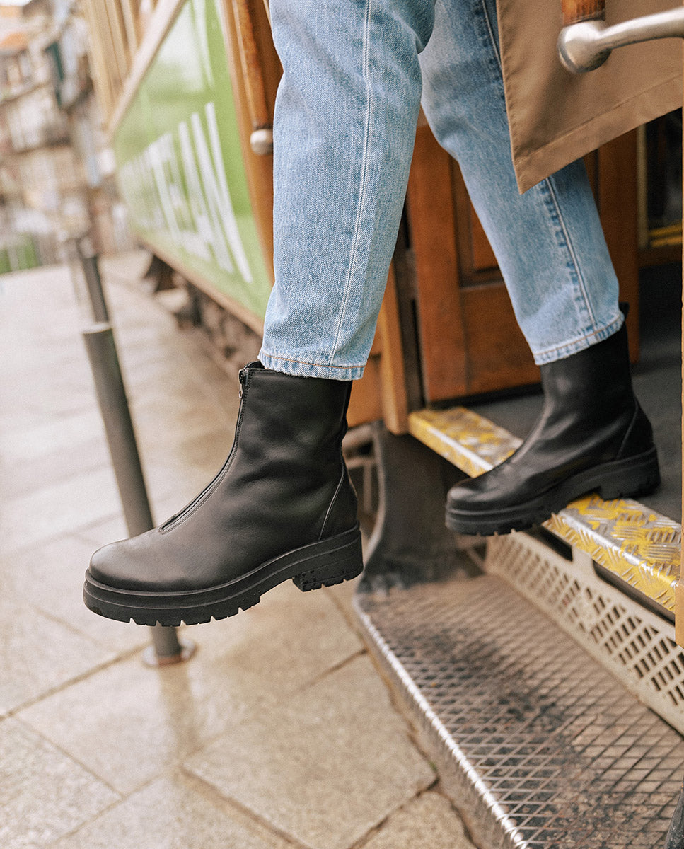 BOTINES TRACK NEGROS PIEL CON CREMALLERA NALA