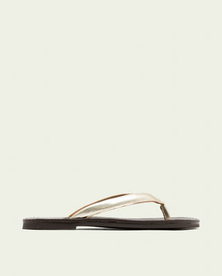 Sandalias doradas planas: Cómodas, ligeras y fáciles de llevar. Funcionan tanto para eventos más relajados como para el día a día, viajes o planes de verano.