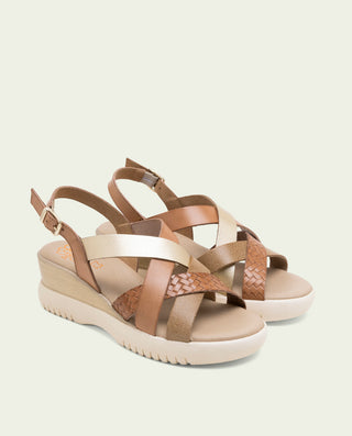 Sandalias doradas con cuña: La opción perfecta si buscas altura sin perder estabilidad. Ideales para bodas, eventos largos o celebraciones al aire libre donde necesitas comodidad real durante horas.