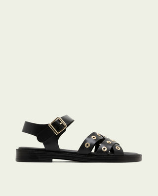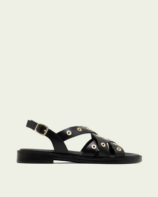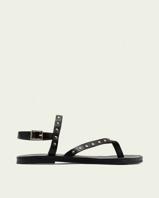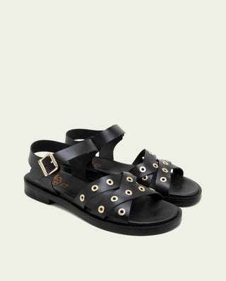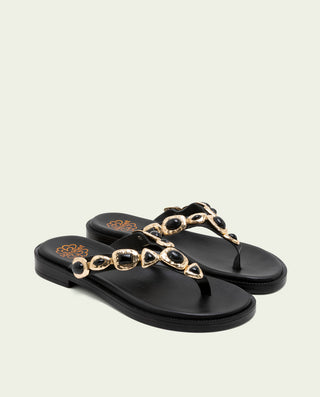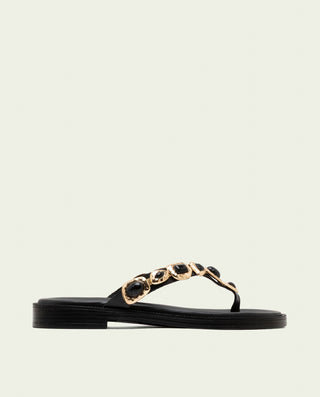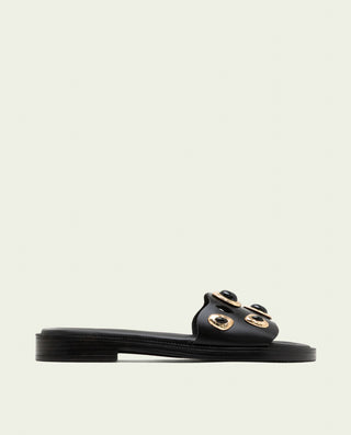 SANDALIA PLANA DE PIEL ESCLAVA PEDRERÍA CRISTINA NEGRO