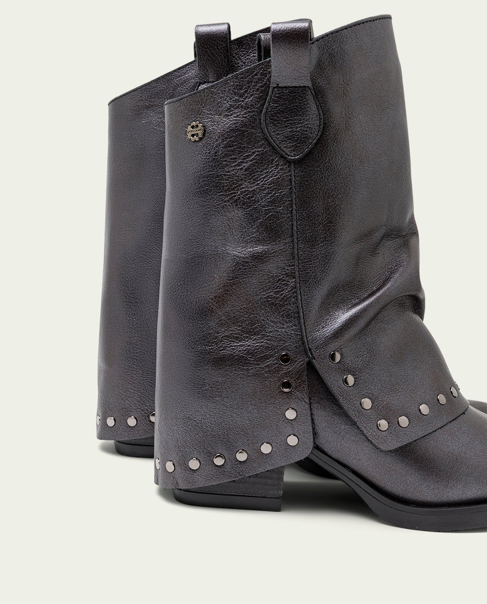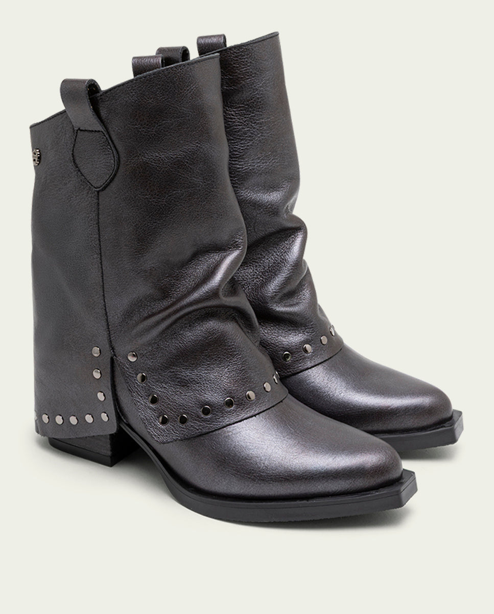 BOTAS DOBLE FAZ DE PIEL MOKA CON TACHUELAS FAITH