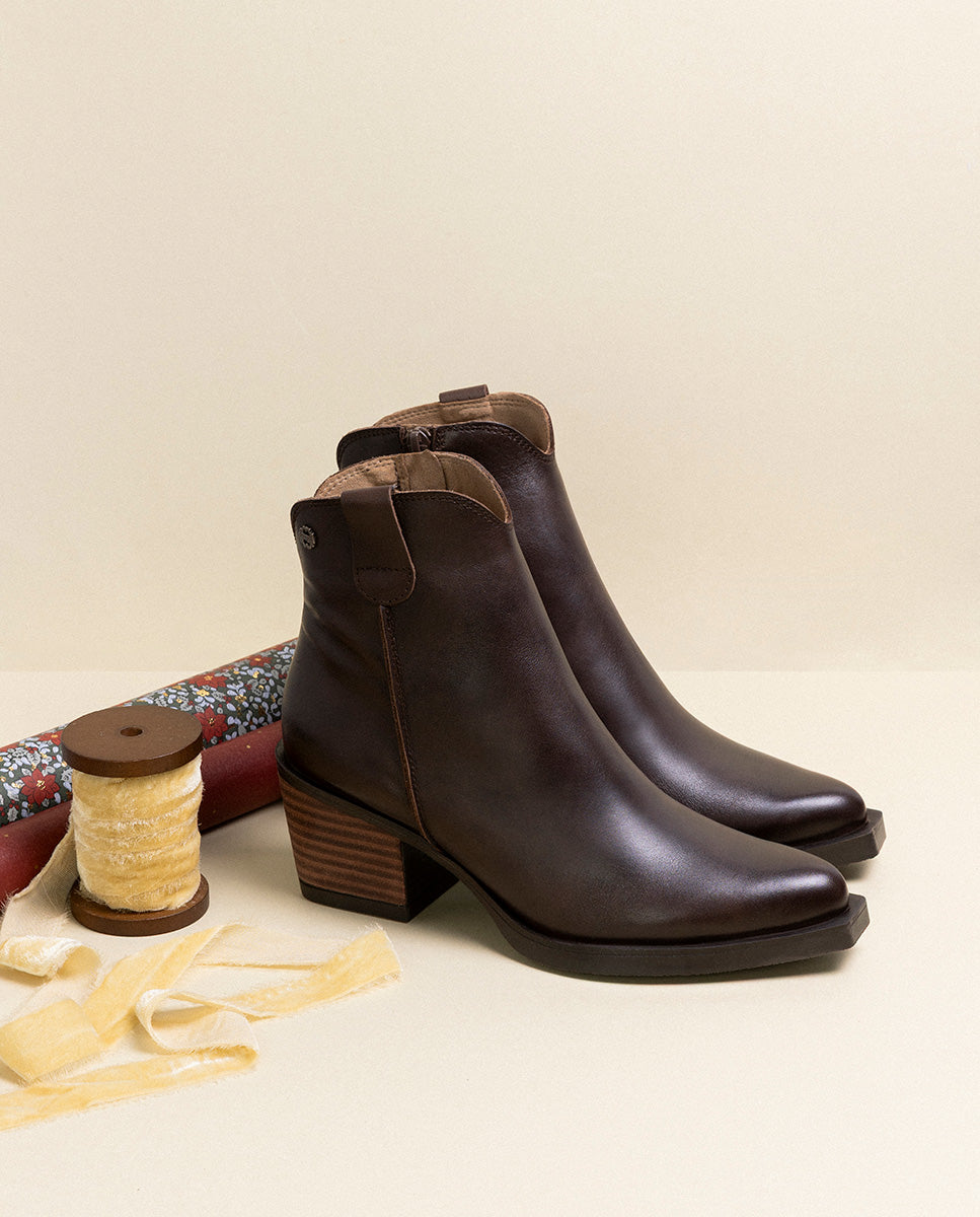 BOTINES COWBOY DE PIEL MOKA CON CREMALLERA FRIDA