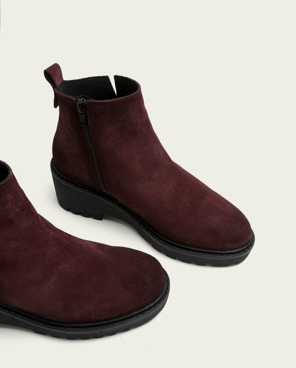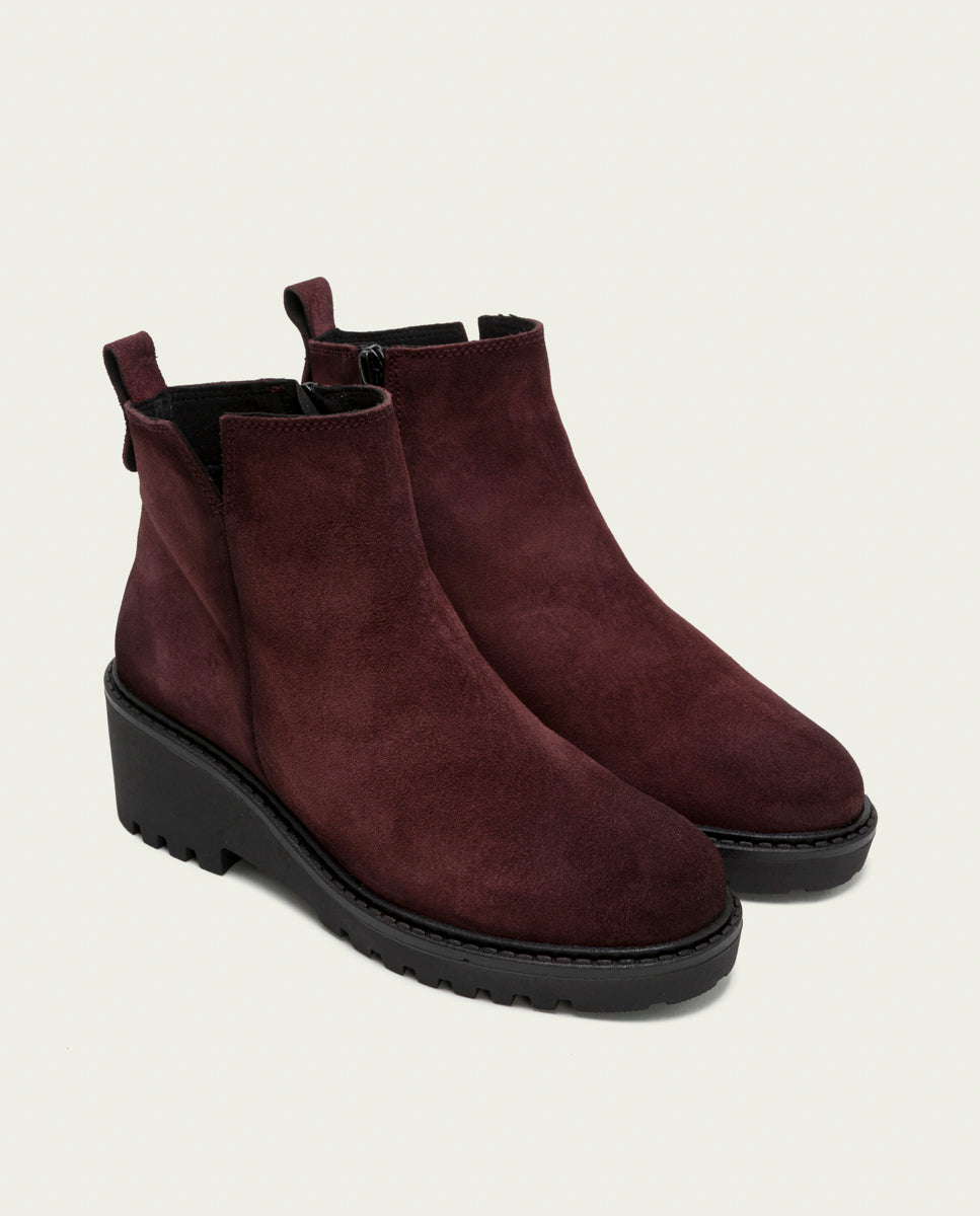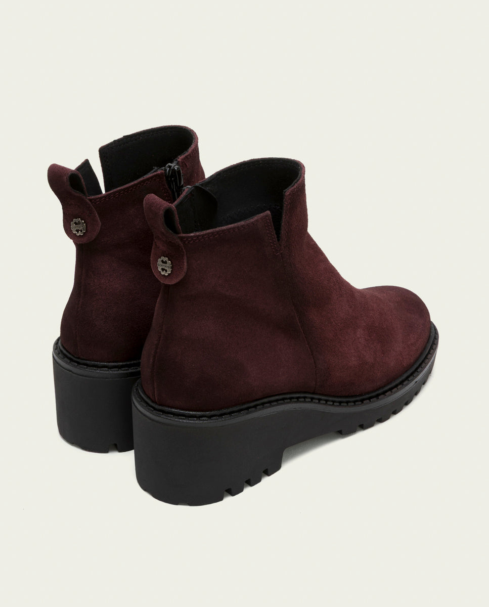 BOTINES DE PIEL CON CUÑA Y CREMALLERA BURDEOS ELISA
