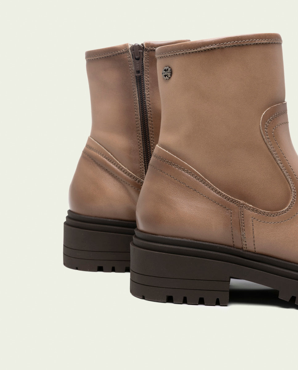 BOTINES DE PIEL TAUPE CON CREMALLERA CLARA