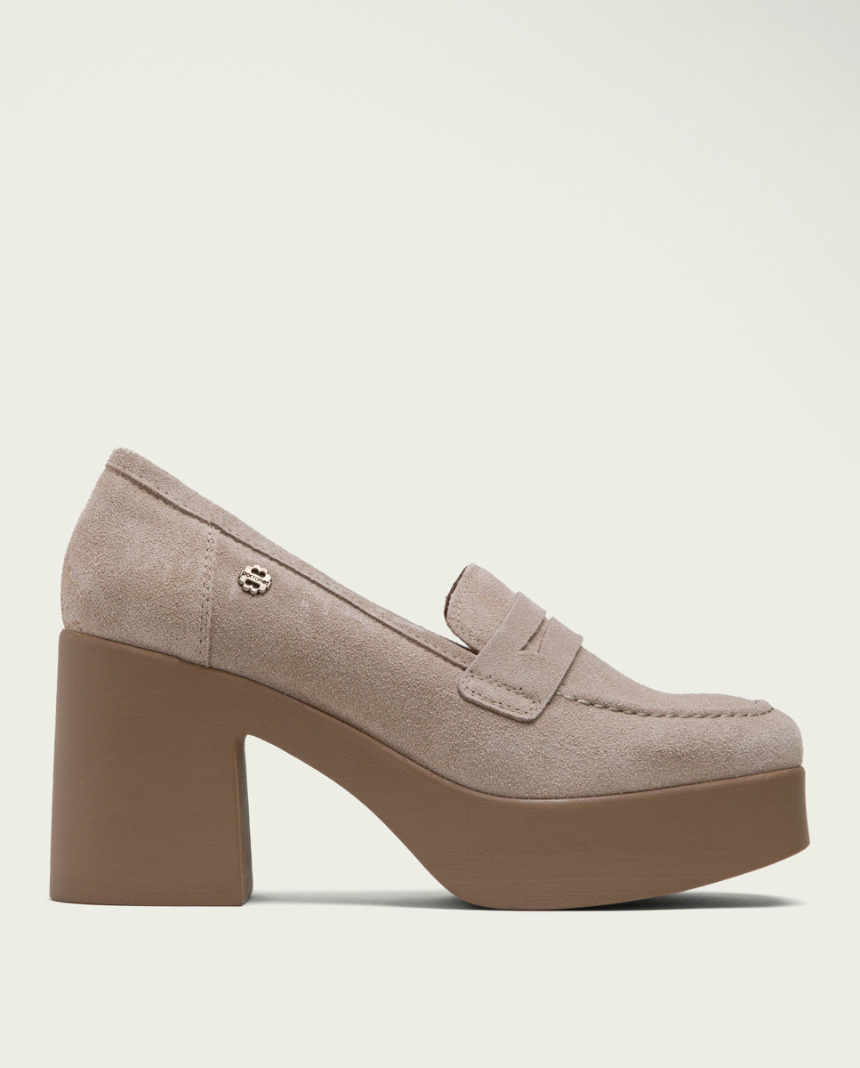 MOCASINES DE TACÓN EN SERRAJE ARENA LUCIA